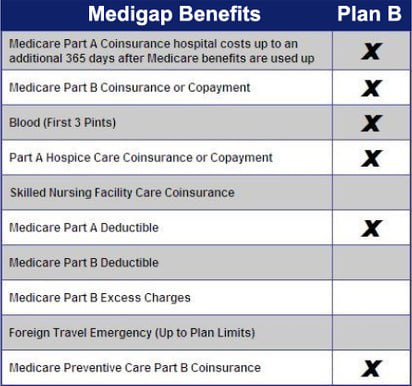 Medigap insurance Plan B is one of 10 different plans currently offered by insurance companies to cover gaps left in your Medicare Parts A and B. Each Medigap Plan offers a different array of coverage options. Here at Senior Benefits Expert, our agents will walk you through the benefits of each plan and make sure that you find the Medicare supplement coverage that best meets your needs. Contact an agent today to find for your Medicare Supplement Plan B quote.