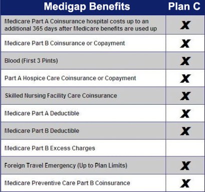Medigap insurance Plan C is one of 10 different plans currently offered by insurance companies to cover gaps left in your Medicare Parts A and B. Each Medigap Plan offers a different array of coverage options. Here at Senior Benefits Expert, our agents will walk you through the benefits of each plan and make sure that you find the Medicare supplement coverage that best meets your needs. Contact an agent today to find for your Medicare Supplement Plan C quote.