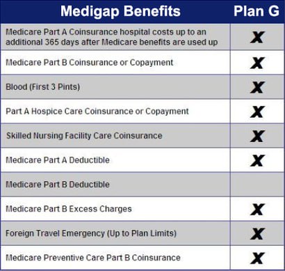 Medigap insurance Plan G is one of 10 different plans currently offered by insurance companies to cover gaps left in your Medicare Parts A and B. Each Medigap Plan offers a different array of coverage options. Here at Senior Benefits Expert, our agents will walk you through the benefits of each plan and make sure that you find the Medicare supplement coverage that best meets your needs. Contact an agent today to find your Medicare Supplement Plan G quote.